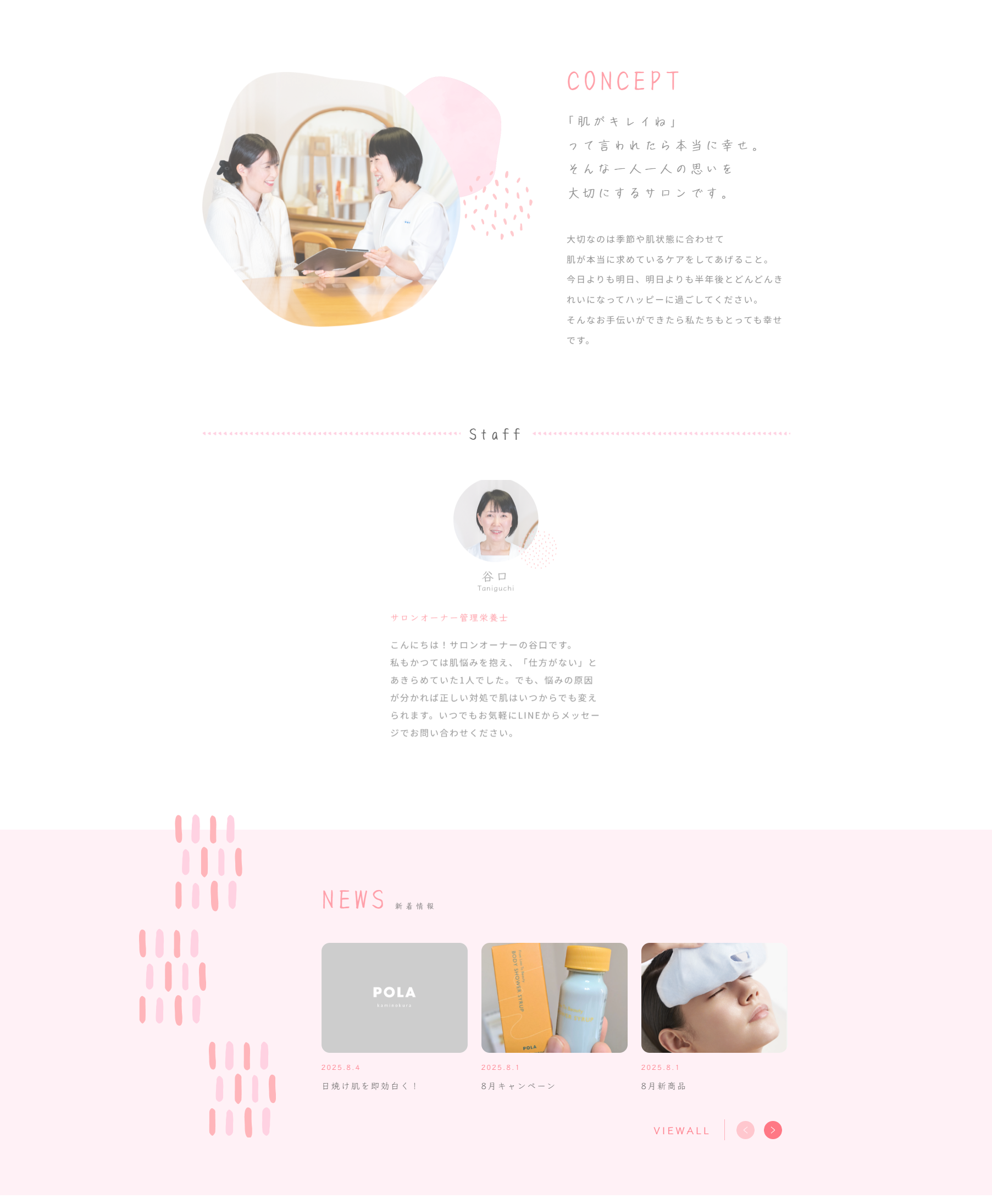 お客さまをそっと包み込むようなあたたかな雰囲気のあるお店を意識しウェブサイトを目指しを制作いたしました。
