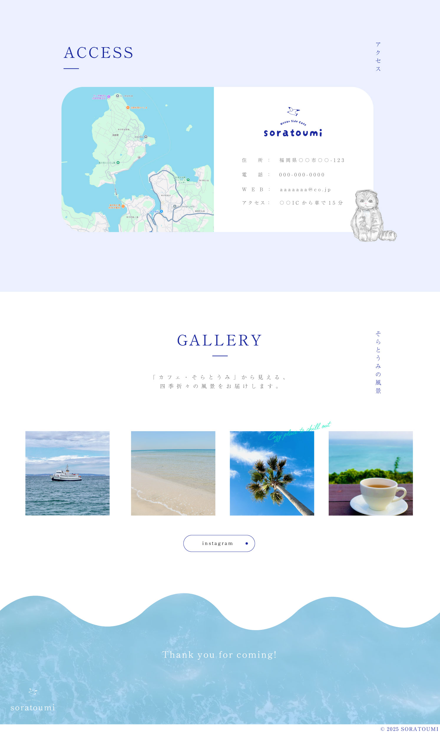 こちらは、海の見えるカフェをコンセプトにデザインした参考ウェブサイトです。